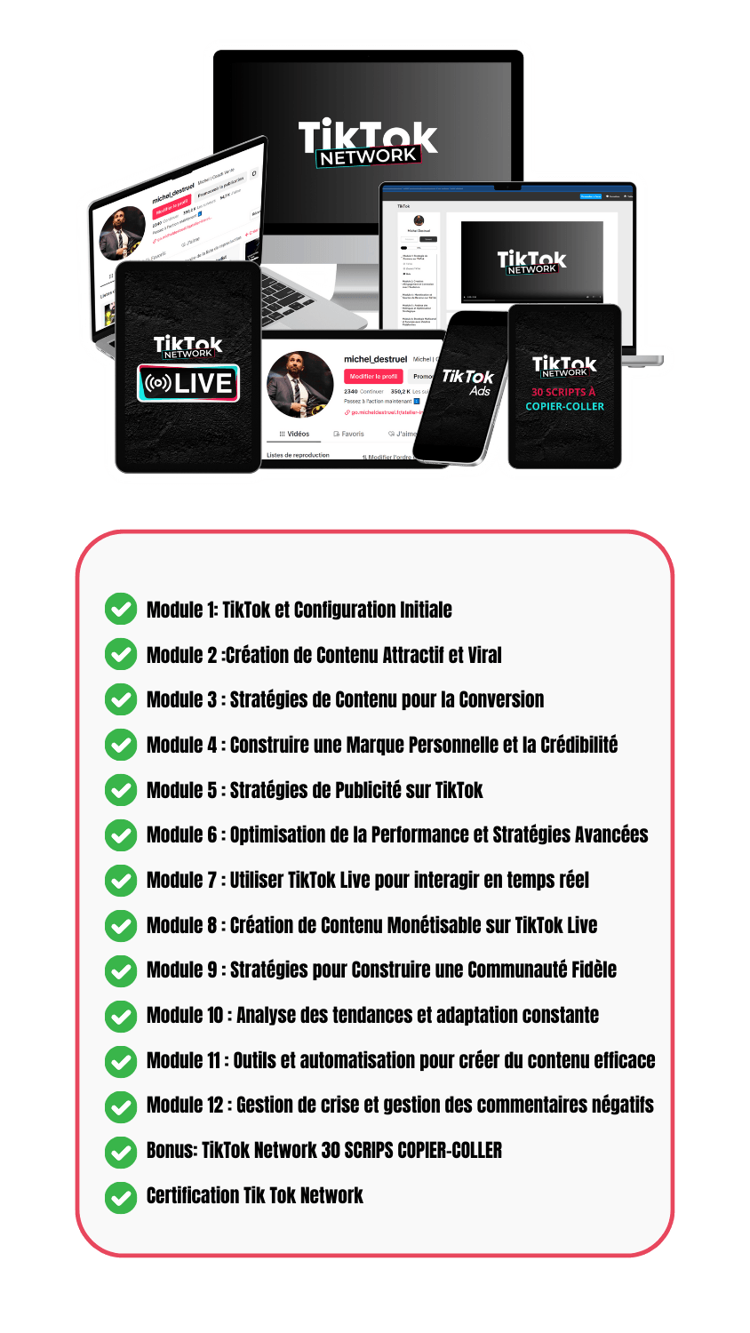 Prêt(e) à devenir un(e) pro de TikTok ? Avec cette certif', tu apprendras à créer du contenu qui buzz, à construire une communauté engagée et à transformer tes abonnés en clients fidèles.
